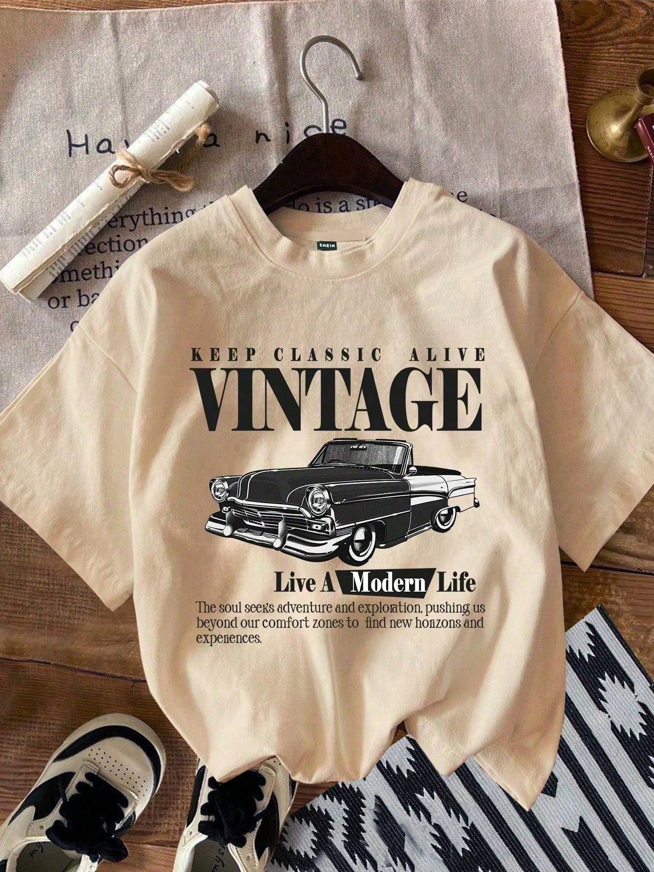 Estampa: Carro clássico + frase inspiradora