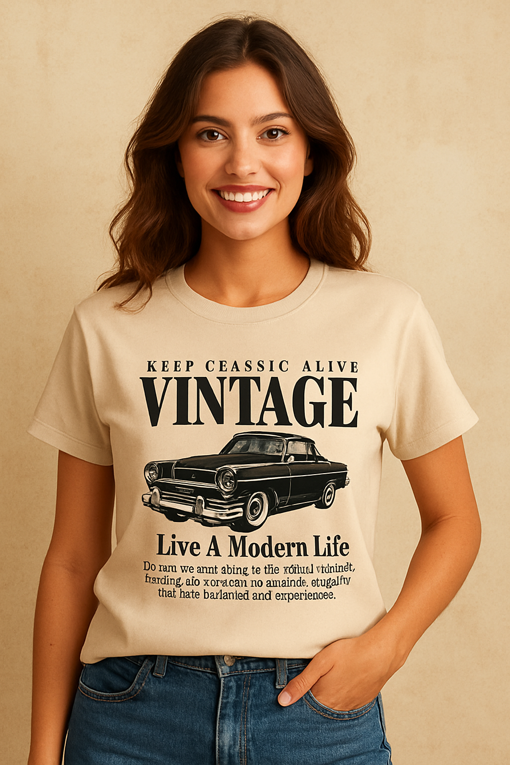 Destaque-se com estilo e personalidade usando a Camiseta Feminina Vintage Keep Classic Alive. Confeccionada em tecido macio e confortável, ela traz uma modelagem moderna e soltinha, perfeita para o dia a dia.