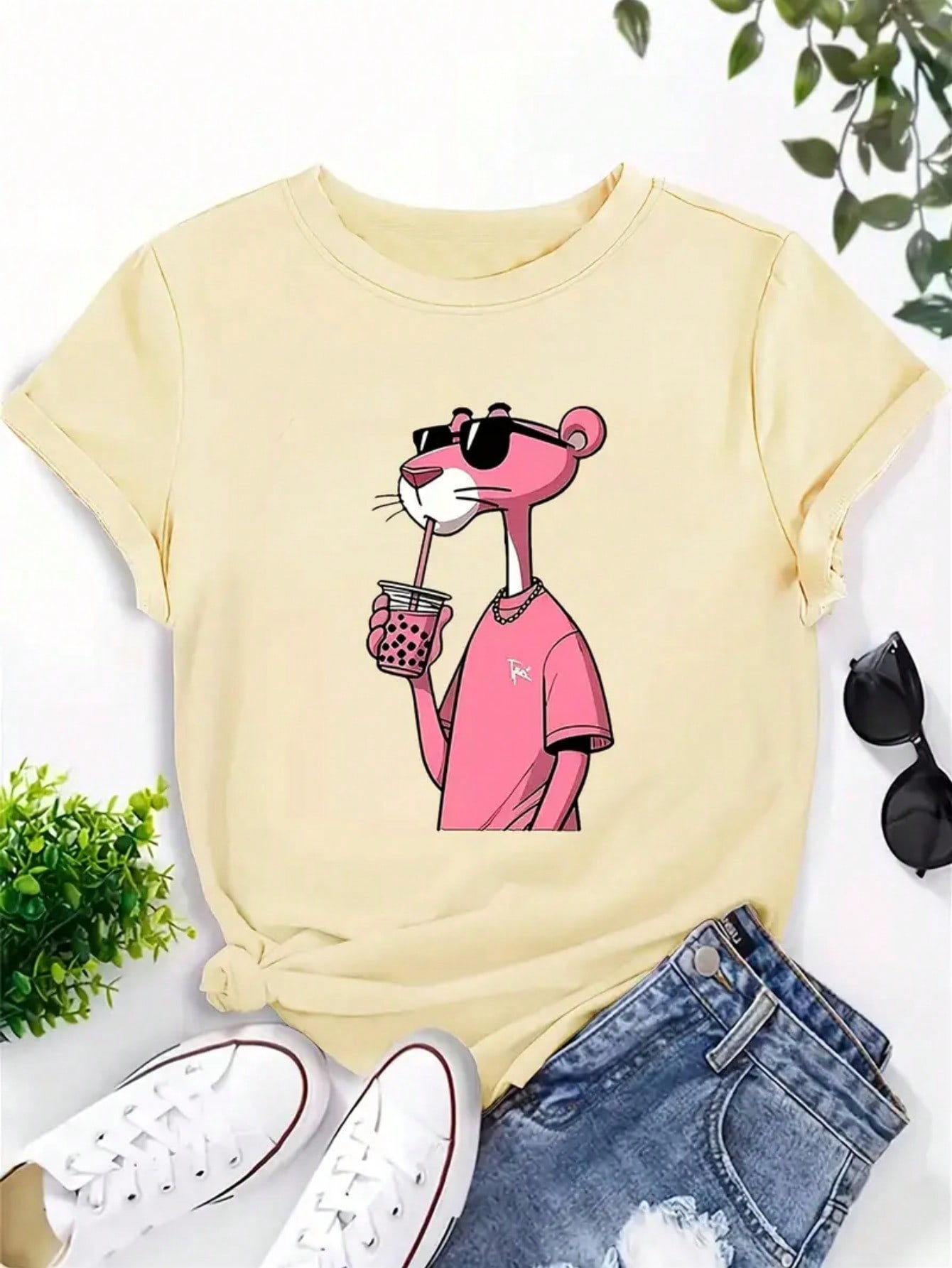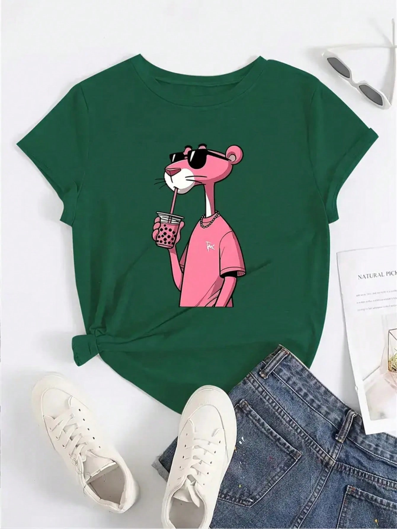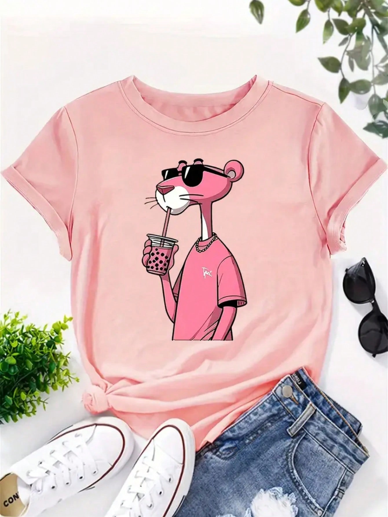Estampa: Pantera cor de Rosa estilosa com óculos de sol