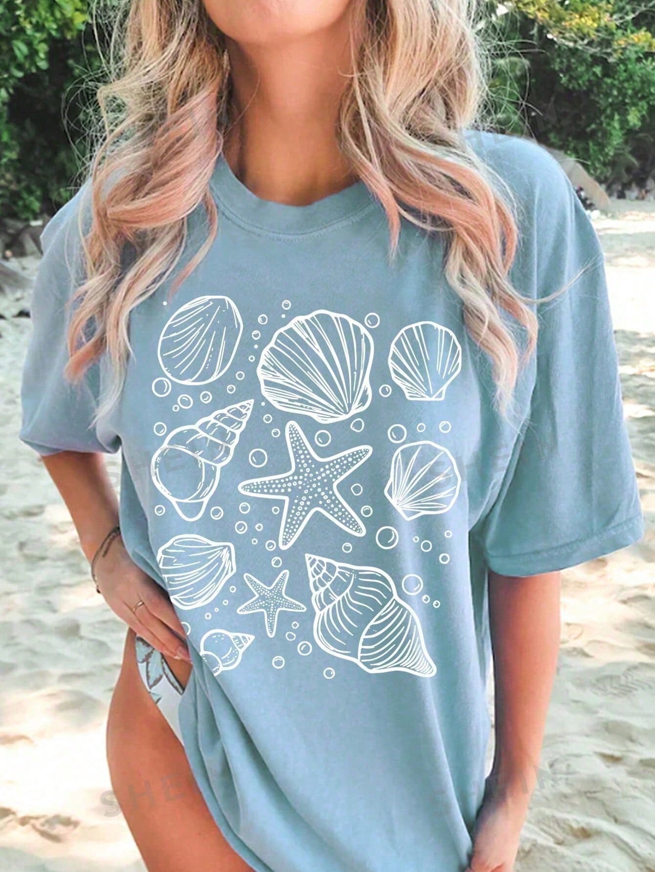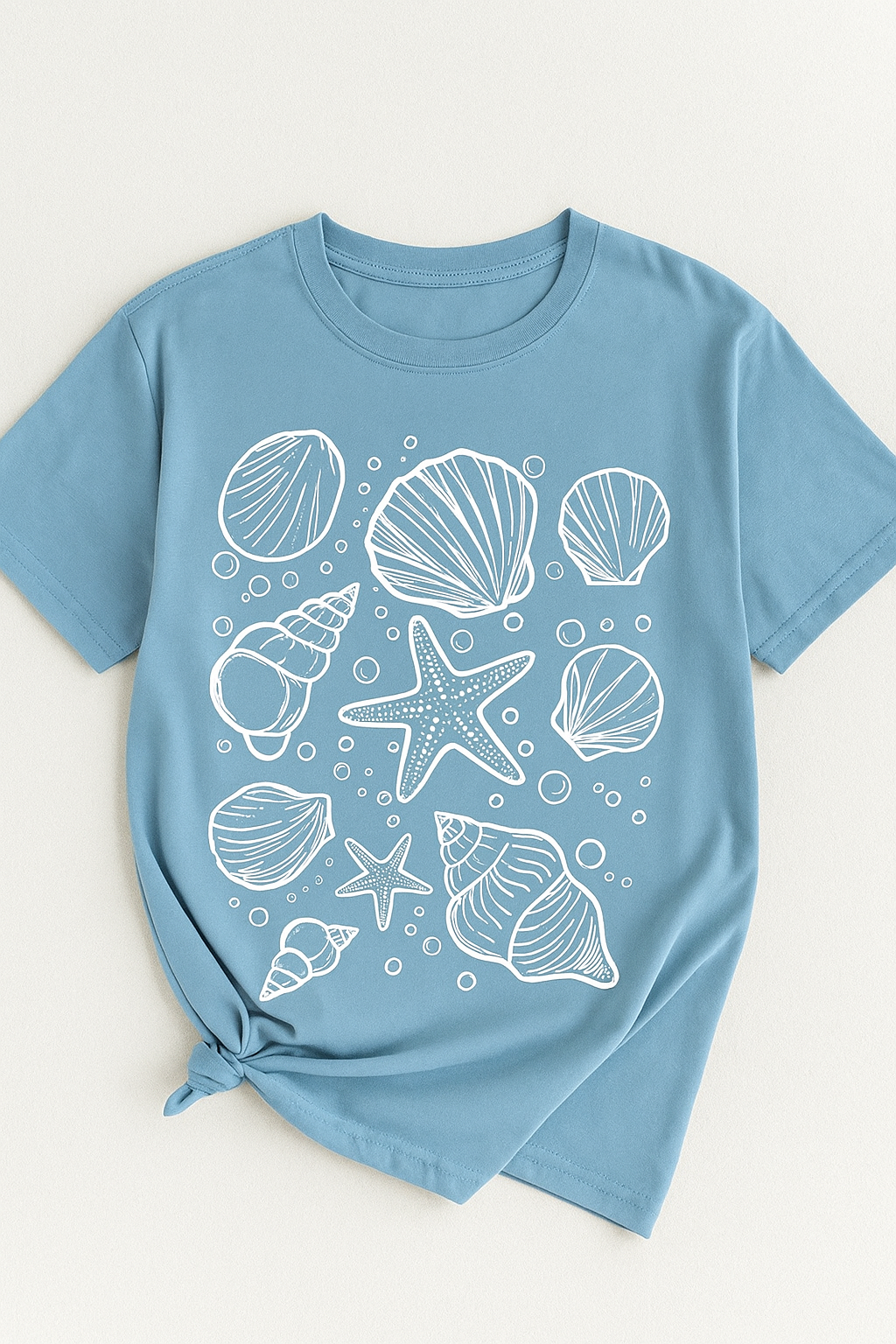A Camiseta Feminina Conchas é a escolha ideal para quem ama o estilo leve, moderno e descontraído, inspirado pelo mar. Com estampa delicada de conchas e estrela-do-mar em branco, ela transmite frescor, alegria e um toque praiano cheio de personalidade.