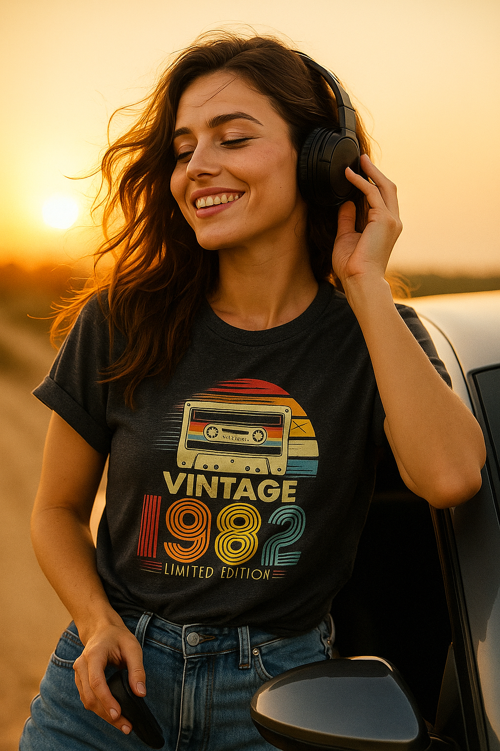 Estampa: Fita cassete com frase “Vintage 1982 – Limited Edition”